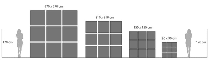 | 9-Delig vierkant | 270 x 270 cm | 9 | 9 x 90 x 90 cm | 12.3 kg |